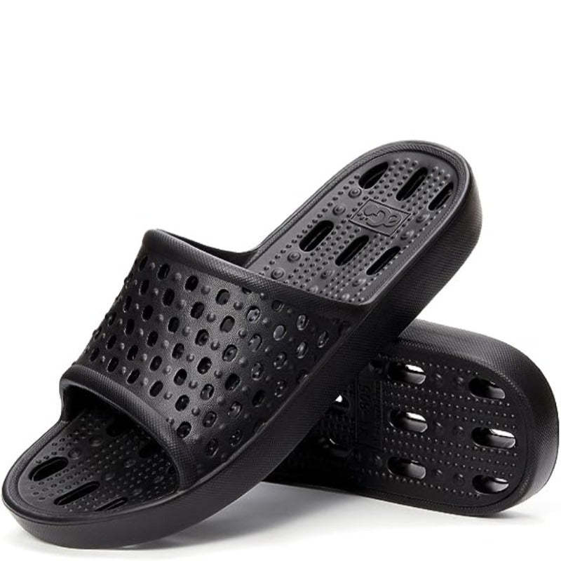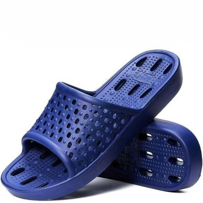 - This is a very comfortable shower shoe. The sole of these sliders is designed with multiple drainage holes, allowing for rapid water drainage and keeping you dry and comfortable when used in the shower.