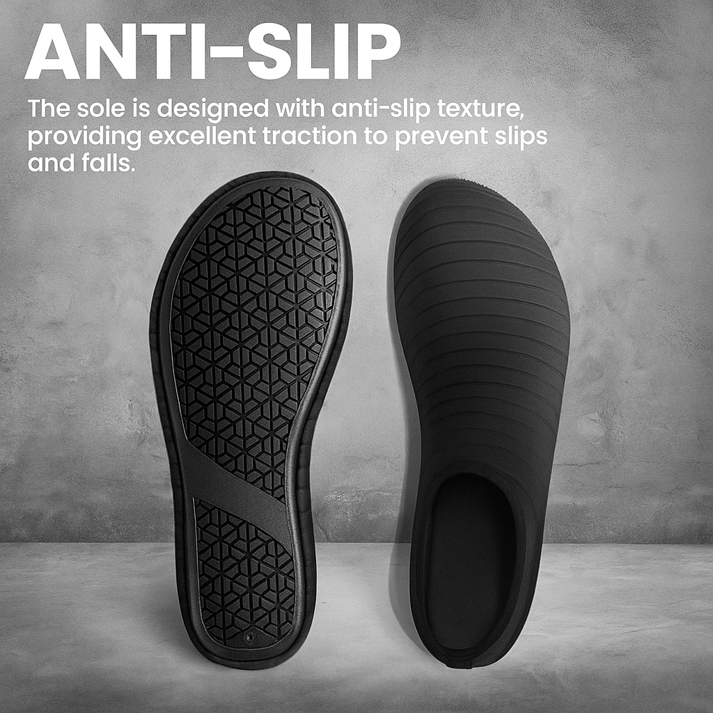 Their slip-on style makes them convenient to wear and remove, and the flexible build allows for easy packing when traveling. The ergonomic sole shape adds cushioning, while the smooth scrag design helps prevent chafing during extended wear and frequent outdoor activities.