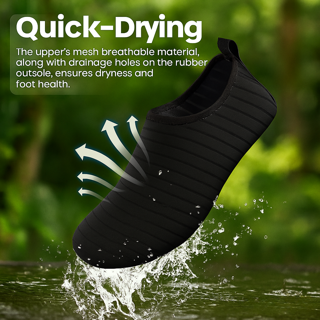 The Quick-Dry Barefoot Water Shoes are designed for active lifestyles that blend water sports and outdoor adventures. With a quick-dry upper, flexible fit, and non-slip rubber sole, they are ready for everything from swimming and surfing to casual walks and yoga classes.
